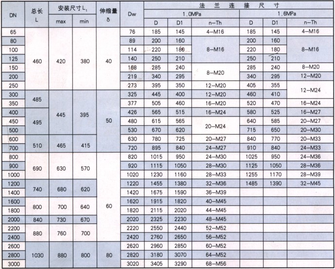 伸縮接頭參數表
